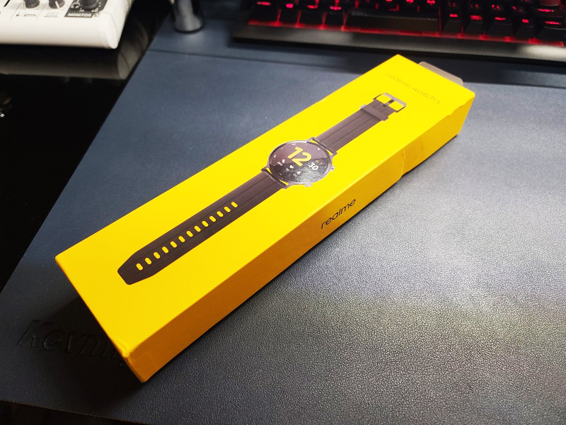 そもそも日本で展開していないRealmeなので、今回はAliexpressから購入しました。本来は中国やインドをターゲットとしたスマートウォッチです。ブランドカラーであるイエローが凄く綺麗。箱はかなり固めの材質ですが残念ながら凹みが…(Aliexpressあるある)