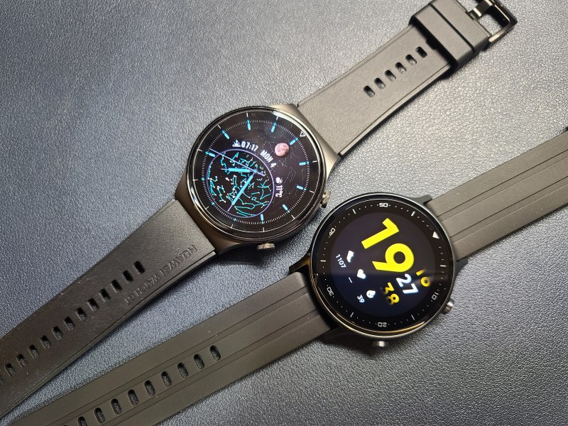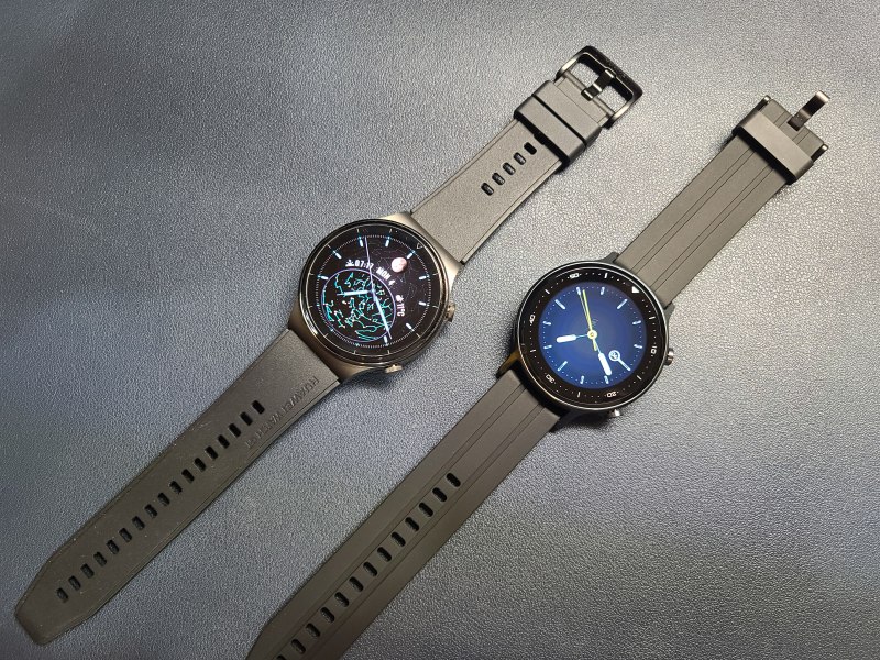 実際に手に取ると、質感の差はさすがに感じますが、こうやって並べて見ても、見劣りしないぐらいかっこいいです。ていうか、GT2とMiWatchを混ぜたようなデザインになってますねw価格的に一番のライバルはMiWatchですかね。3,000円ぐらいしか変わりません。そう考えるとMiWatchColorのコスパってヤバいですね。