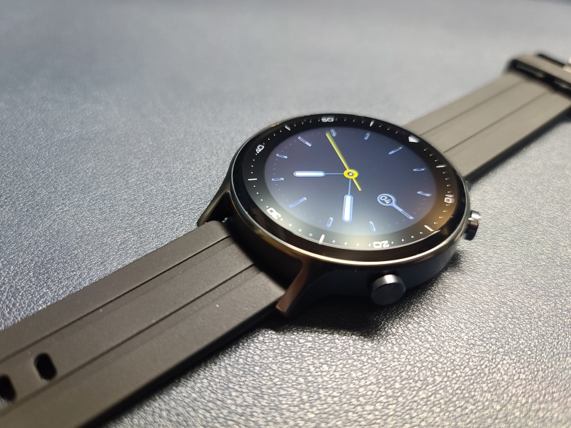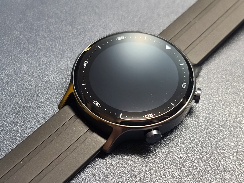 価格的に仕方無いと思いますが、ディスプレイはAMOLEDでは無く液晶です。明るさは十分で、逆に外での視認性はAMOLEDのより良いように感じます。これはウォッチフェイスにもよるかもしれませんが、ちょっと白っぽい感じはありますね。