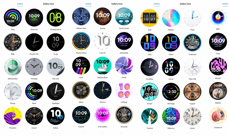 個人的に超重要な要素、ウォッチフェイスが充実してるかどうかっていう点ですが一応ウォッチフェイスストアという形で100種類近くのウォッチフェイスがダウンロード可能です。ただ、本体ストレージが無いので、1種類しか保存出来ません。再度設定したい場合は、またダウンロードと同期が必要なため微妙に面倒くさいです。