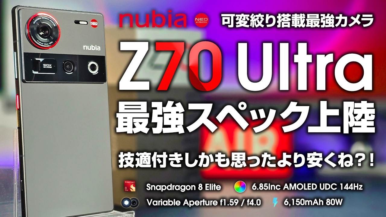 今回はnubia Z70 Ultraをレビューします。昨年、試験販売にてグローバル版 Z60 Ultraを日本国内に展開したnubiaですが、ついに日本の技適にも対応したフラッグシップを投入してきました。