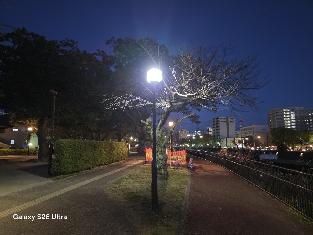 こちらもLeistz Phoneと比べて来ました。LeitzPhoneはダイナミックレンジを強化するLOFICセンサーが搭載されています。白飛びとダイナミックレンジの例です。S26 Ultraは光源に対して白飛びの抑えがあまり上手くないようです。専用のLOFICセンサーを搭載するLeitzPhoneと比べるとやはり差があります。