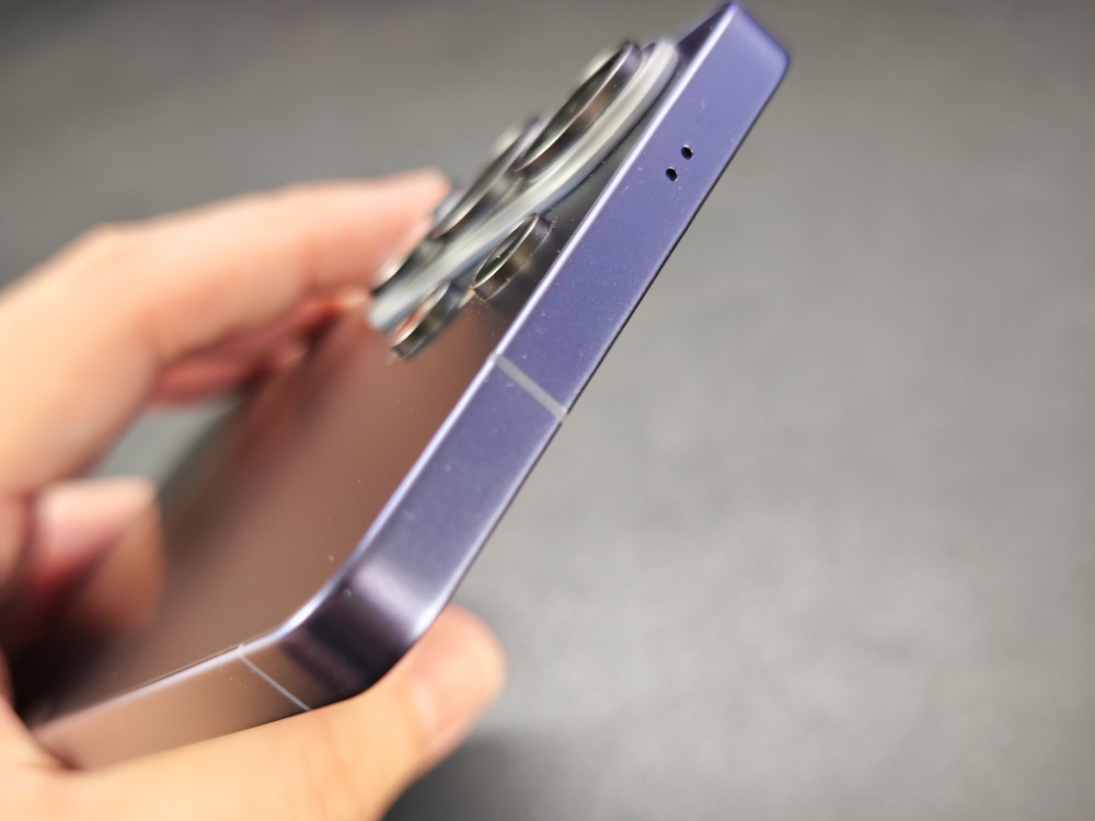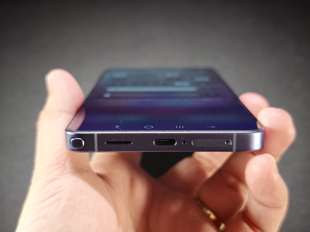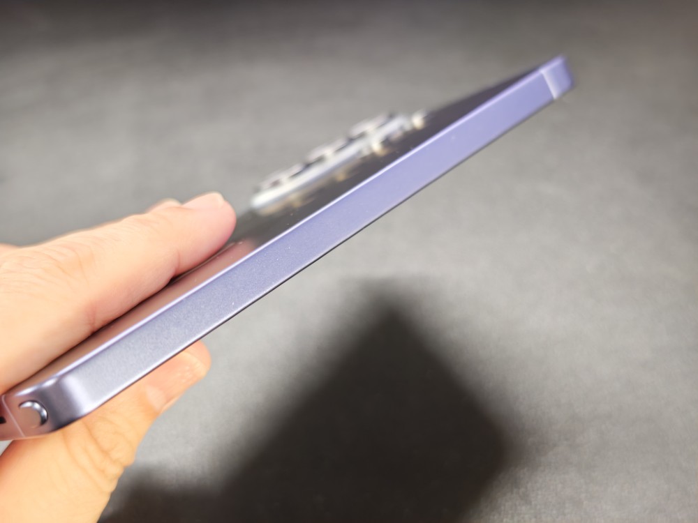 サイドフレームはチタンからアルミニウムに戻ってしまいました。何か世の中のiPhoneの右に倣え!というムーブはなんとかならないですかね?iPhoneがチタンからアルミにしたから我々も模倣するんだ!的なノリなんでしょうか?個人的にスクラッチ体制の高かったチタンフレームは、薄型のケースなどを使うときに重宝していたのに残念なポイントです。とは言え、質感が悪いわけでなく塗装も丁寧で強度もガッチリしています。サムスンのチタン塗装は大部分荒かったのでこれはこれでいいのかもしれませんね。