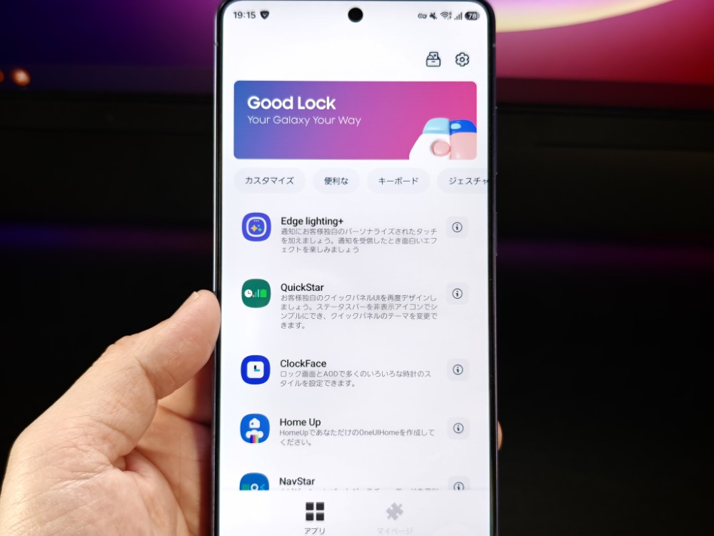 SAMSUNGスマホを便利に扱うにはGoodLockアプリは必須です。前作から日本でも使えるようになったのでまだ知らない人も多いと思いますが、このアプリはSAMSUNG公式が出しているユーティリティーソフトウェアです。OneUIを拡張するアプリで、通常出来ない挙動や設定がこのアプリから設定する事ができます。それぞれ別々のアプリとなっており、GoodLock上で統括管理するイメージですね。