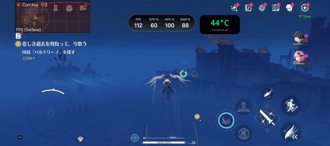 ゲーミングスマホのように144fpsといった動作は難しいですが、60fpsを超える動作を出せるので鳴潮の動作感自体は良いと思います。